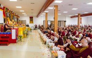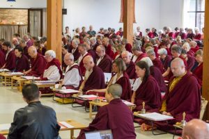Otrzymawszy takie nauki i angażując się w praktyki wraz z innymi członkami Sanghi, wszyscy wyrazili swoją ogromną wdzięczność dla naszego drogocennego guru, który niestrudzenie urzeczywistnia wszelkie pożytki dla wszystkich istot. Zgromadzenie zakończyło odosobnienie, składając obszerne ofiary z mandali oraz ciała, mowy i umysłu.
