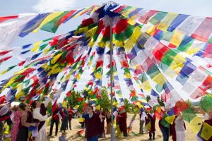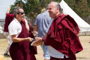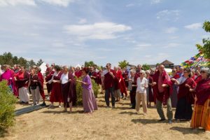 Ćhö gar został założony zgodnie ze wszystkimi właściwymi rytuałami odnośnie składania ofiar i przygotowywania miejsca. Następnie sangha podniosła flagi lungta i radośnie wykrzykiwała tradycyjne „Kiki Soso!” jako tendrel dla długiego życia.