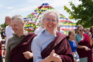 6 lipca Rinpocze poprowadziła Sanghę Mindrolling International i wielu członków Sanghi z różnych ośrodków Dharmy w świętowaniu pomyślnych urodzin Jego Świątobliwości Dalajlamy poprzez ofiarowanie mandali i modlitwy o jego długie życie.